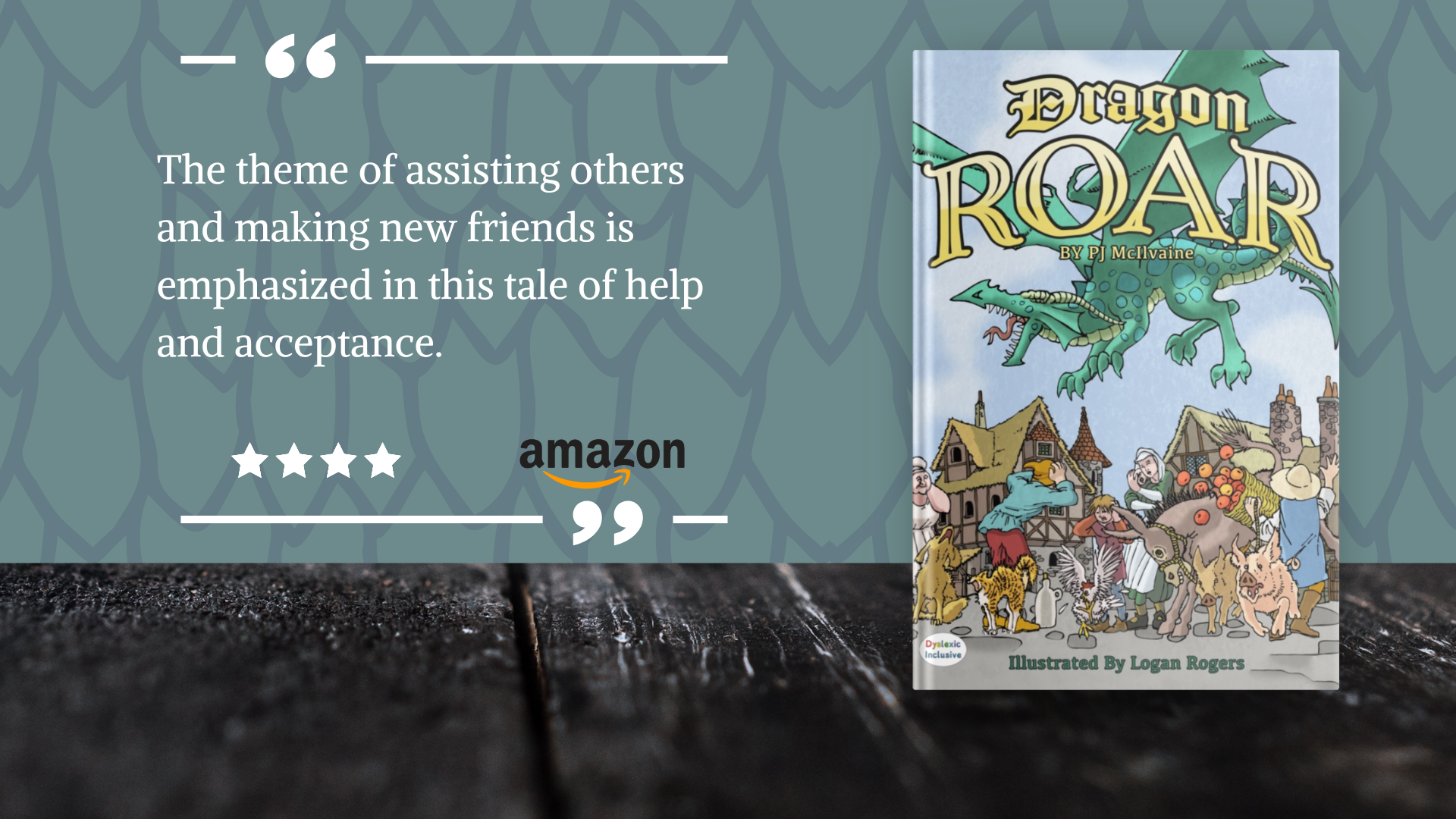 Cosmos was a dragon with his own mind. He liked to fly over the village and eat what he wanted whenever he wanted. But what he really loved is his fierce ROAR….until one morning he woke with a frog in his throat. He squeed. He bleated. He squealed and screeched. But he could not roar.