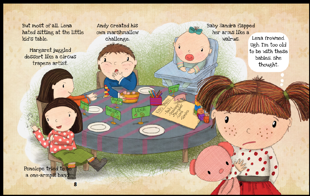 Every child wants to sit at the big table with the adults. Little Lena has the same desire. Every year her family tells her she’s not big enough. Little Lena is determined to show her family she deserves a seat with the adults. This book is full of chaos and heartfelt charm that each of us has experienced once in our lifetime.