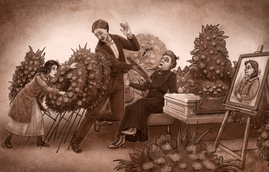 Two years later, a rebellious twelve-year-old Violet is on her way back to Manhattan on the doomed Titanic. As the ship sinks into the deep Atlantic Ocean, she’s put in a lifeboat by an apparition who rescued her from the clutches of a jewel thief. Presumed lost at sea, Violet shocks everyone by crashing her own funeral.